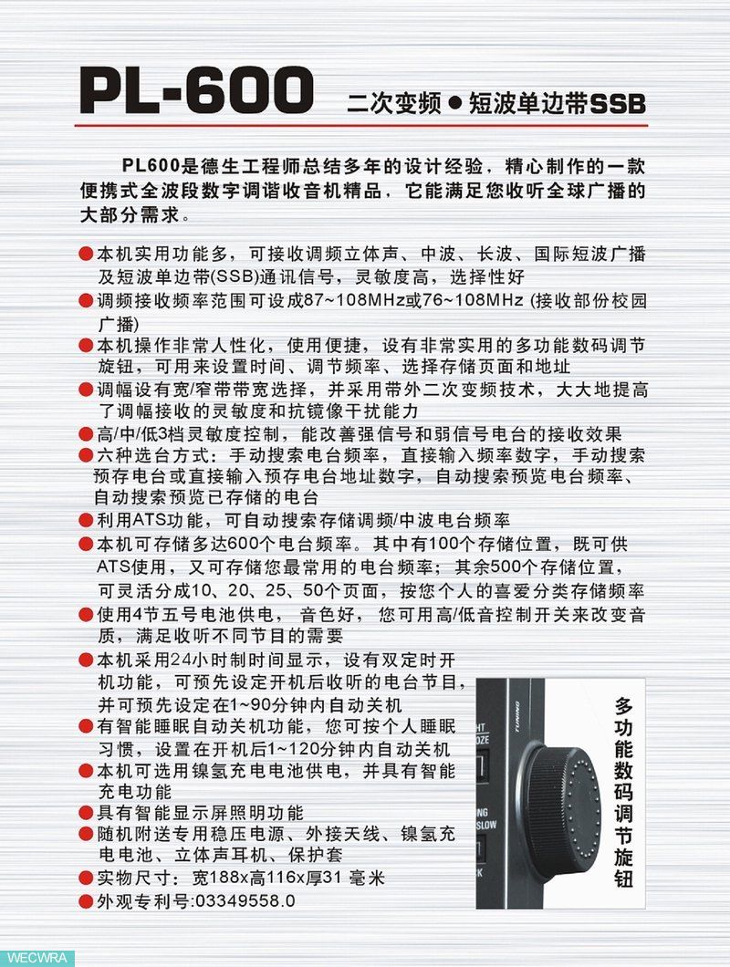 收音机 PL450和PL600收音机包装 广播发烧网 2008-01-28 00:00 · 2013 0 点赞 0 文章目录 × 推荐阅读50~70年代国产收音机的几款经典机型中国收音机百年史SONY 最后一台高端全波段收音机的前世今生浅谈收音机的百年发展历史固件版本为078版本的山进909X2收音机的整体表现不错国产古董级晶体管收音机——东湖牌收音机新机亮相--德劲DE1108小米LED灯下的德生PL-230德生PL-330拆机高清大图从上海滩起家的中国收音机100年史,背后是集成电路的发展史 上一篇 石家庄市的调频广播频率(2008.1) 下一篇 多图全方位解析即将上市的德生PL600