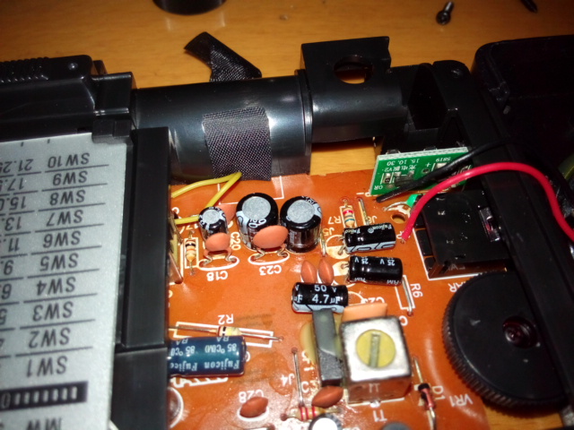 FM性能和5号电池差不多,都是低性能机子,充口有个红色指示灯,充满灯灭,USB口及电路板与收音主板垂直焊接在一直