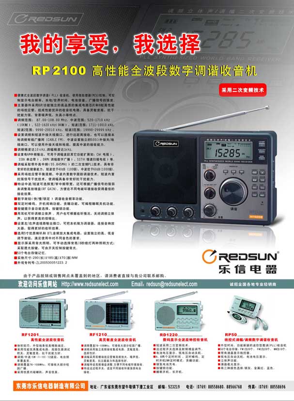 收音机 乐信RP2100数调机广告. 广播发烧网 2006-08-10 00:00 · 1922 0 点赞 0 文章目录 × 推荐阅读50~70年代国产收音机的几款经典机型中国收音机百年史SONY 最后一台高端全波段收音机的前世今生浅谈收音机的百年发展历史固件版本为078版本的山进909X2收音机的整体表现不错国产古董级晶体管收音机——东湖牌收音机新机亮相--德劲DE1108小米LED灯下的德生PL-230德生PL-330拆机高清大图从上海滩起家的中国收音机100年史,背后是集成电路的发展史 上一篇 令人神往的FMDX活动!(2006FMDX-Es大结局) 下一篇 DE1121中文丝印效果图