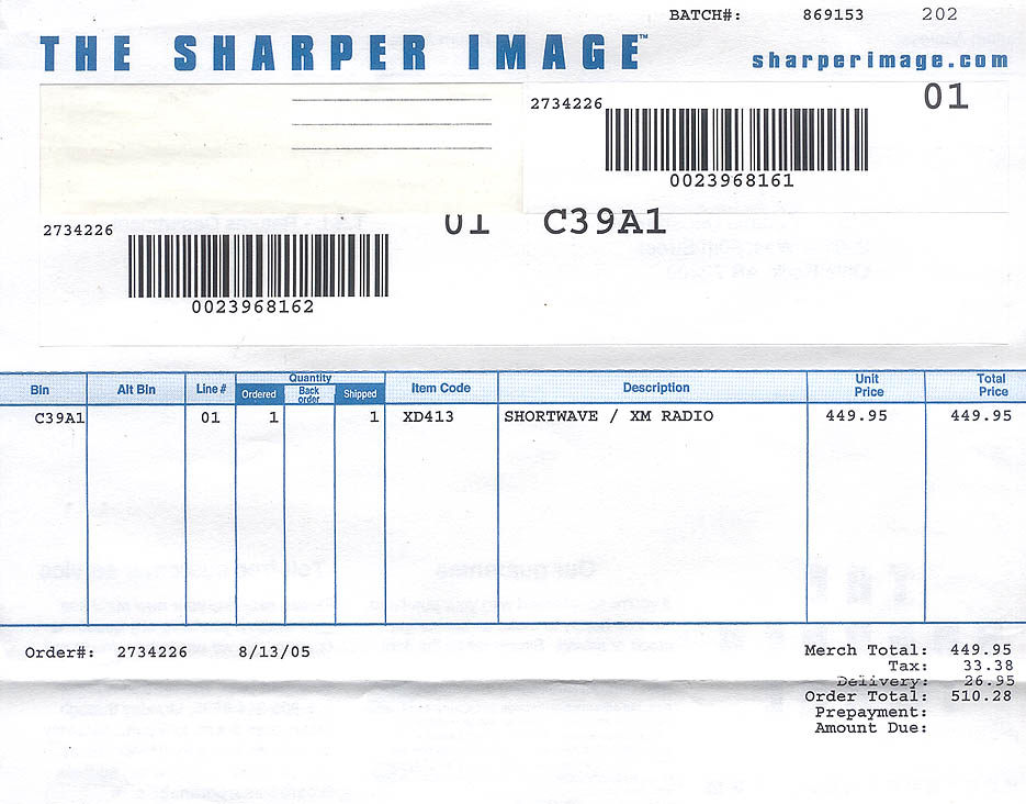 点击打开连接,这里就不再重复了!这机一共买了600多美元,幸好俺的托儿网友有一张SHARPER IMAGE的$50优惠券,把原来是$499.95的机子只付$449.95就买到了,不然花费就更高了。不过,税款是$33.38以及美国内陆运费$26.95,一共就是$510.28!最后,还须加上美国至香港的EMS快递费用$62.00以及一些汇款的费用,这机的总消费就超出六百美刀了!