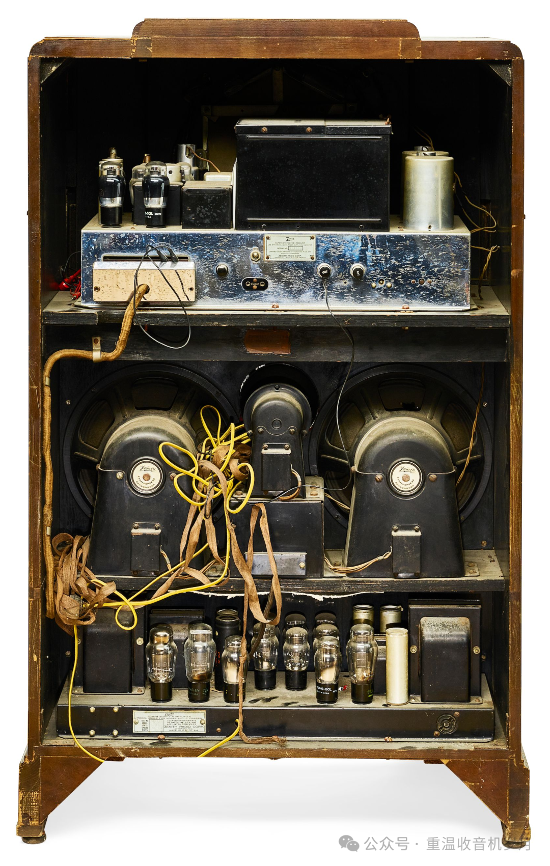 在古董收音机收藏界,Zenith Stratosphere 1000Z 被公认为无法替代的“圣杯”。尽管当年750美元的售价不及后来的几位“怪物”那般惊世骇俗,但在1934年末,这依然是一笔巨款,相当于当时一栋普通小房子或者一辆豪华汽车的价格。1933年4月13日,为了抗衡E. H. Scott豪华落地式全波段收音机(Allwave 12 Deluxe)在高端市场的领先地位,Zenith公司总裁Eugene Francis McDonald Jr.下令正式启动Stratosphere 1000Z型收音机的研发工作,目标是设计并打造一款全球顶尖的高端收音机。1934年8月10日,Zenith在芝加哥授权经销商会议上发布了1935年度机型,此次会议的一大重磅亮点是 25管Zenith DeLuxe旗舰机型(9月底正式命名为Stratosphere)的亮相。1934年末,Stratosphere 1000Z型收音机正式投产。1000Z是融合当时所有先进工程技术成果的典范,这款“明年之明日的收音机”(The radio of next year's tomorrow)一经推出便为整个收音机行业树立了全新标杆,引燃了20世纪30年代中后期高端收音机行业激烈“军备竞赛”的导火线,原本波澜不惊的竞争态势被火速推向白热化。