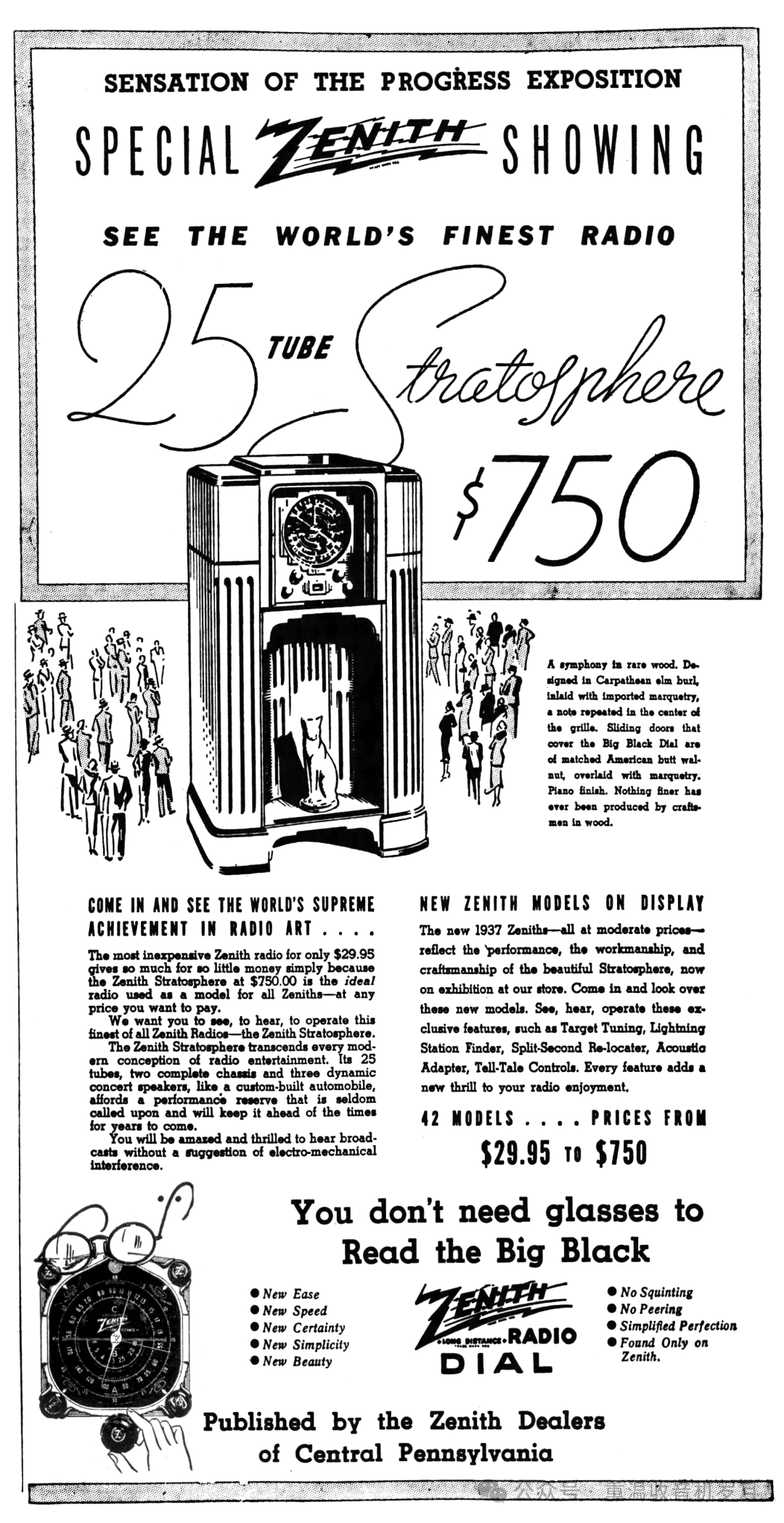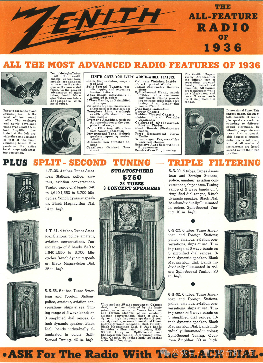 25管Zenith Stratosphere介绍,来自1937年Zenith高级收音机样本。文字翻译: