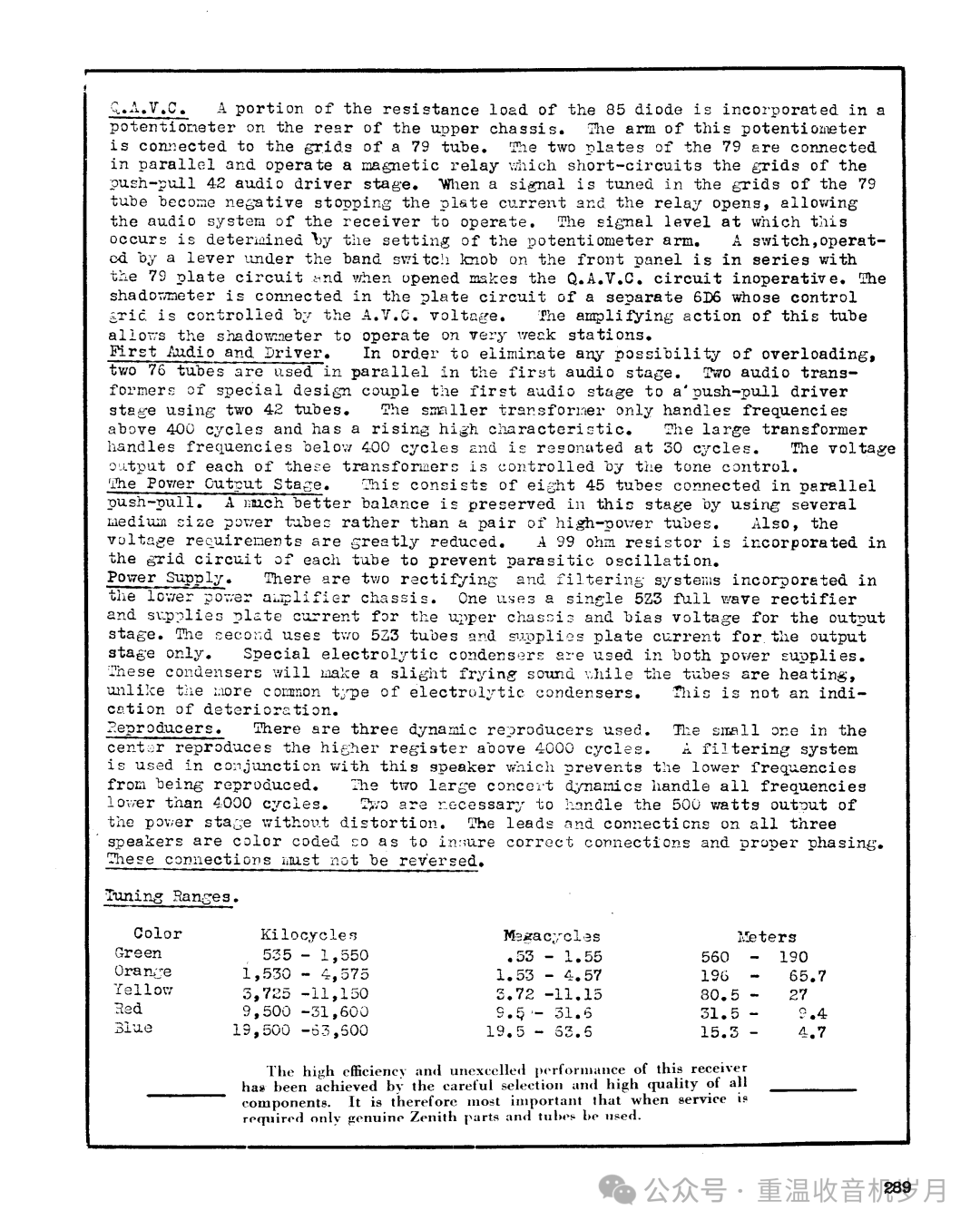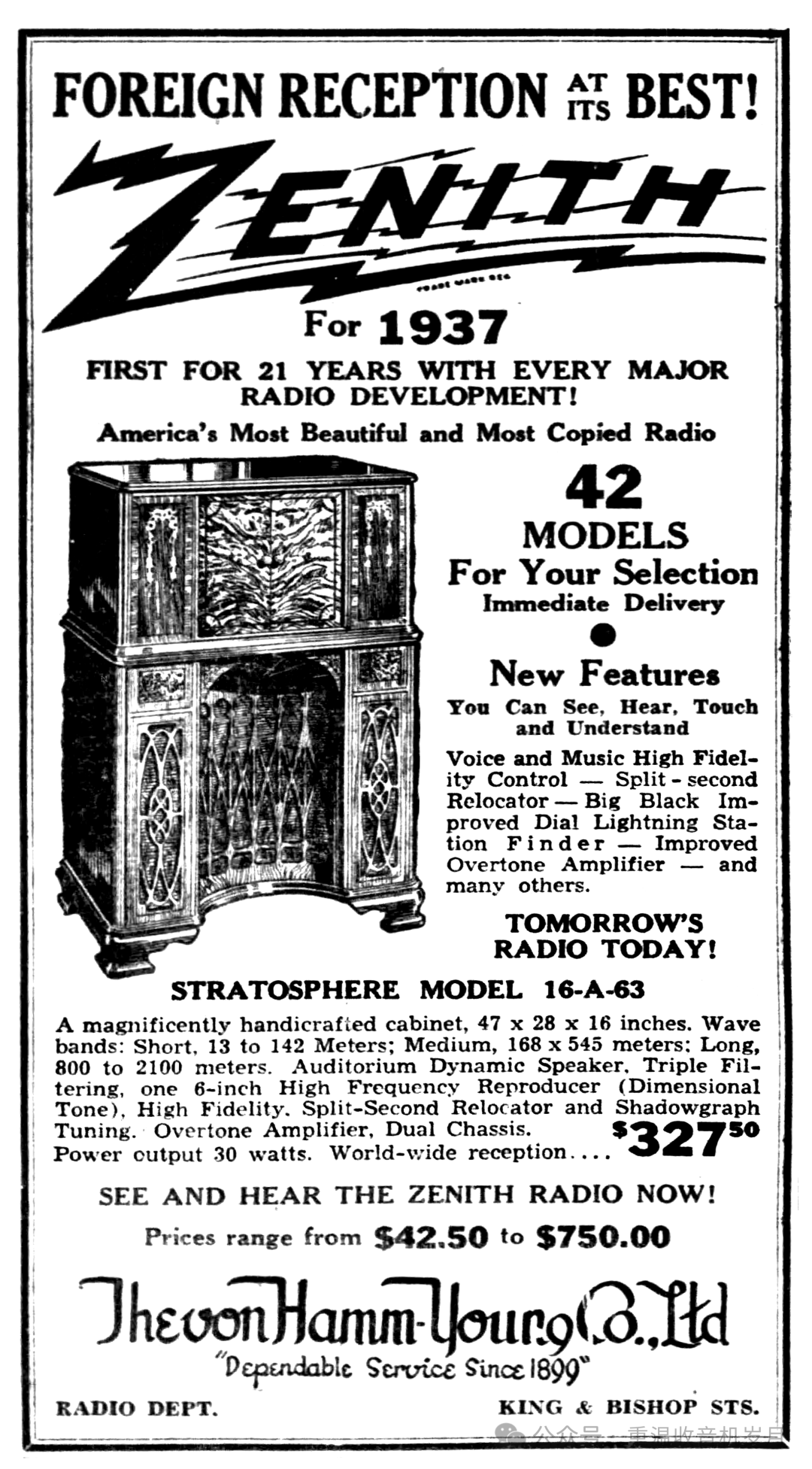 Zenith 16-A-63介绍,来自1937年Zenith高级收音机样本。文字翻译: