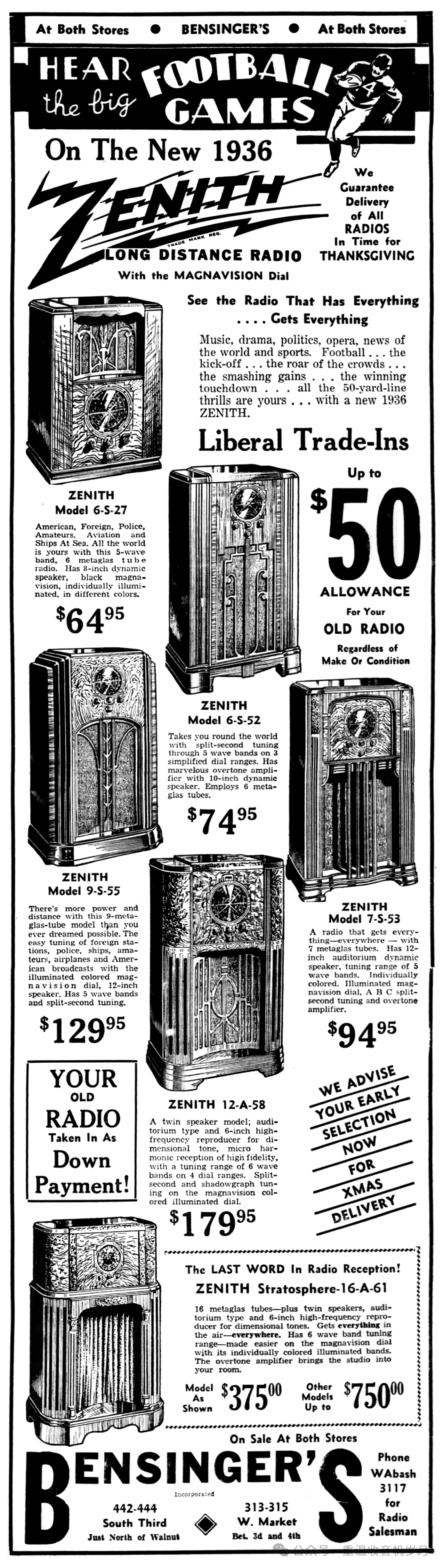 Zenith 16-A-63广告,来自《Honolulu Star Advertiser》1936年9月27日第36版。