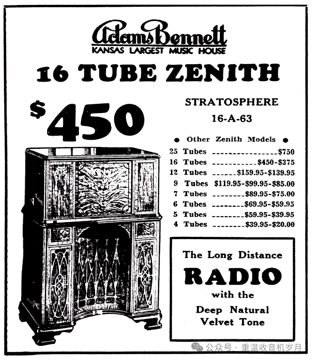 Zenith 16-A-63(Stratosphere Jr.)广告,来自《Kansas City Journal》1935年9月22日第23版。