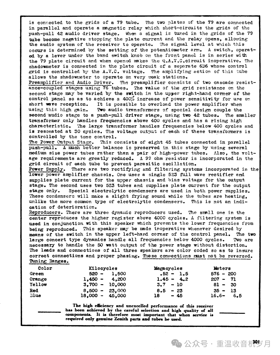 Zenith 16-A-61介绍,来自1937年Zenith高级收音机样本。文字翻译:
