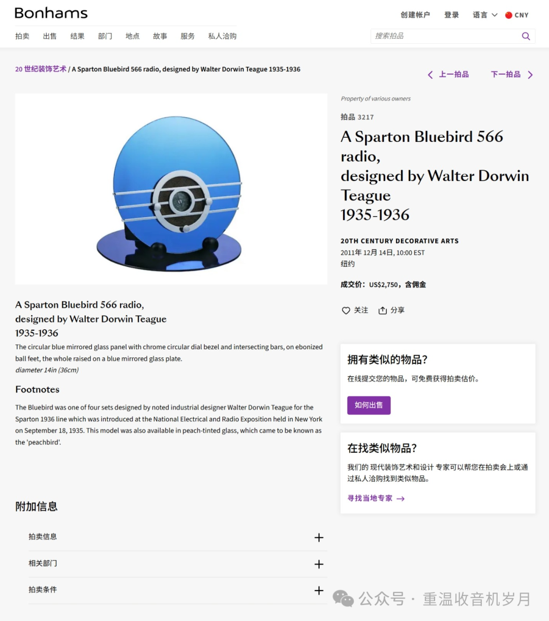 2021年3月25日,Bonhams拍卖的桃色Bluebird(Peachbird)以3500美元成交。