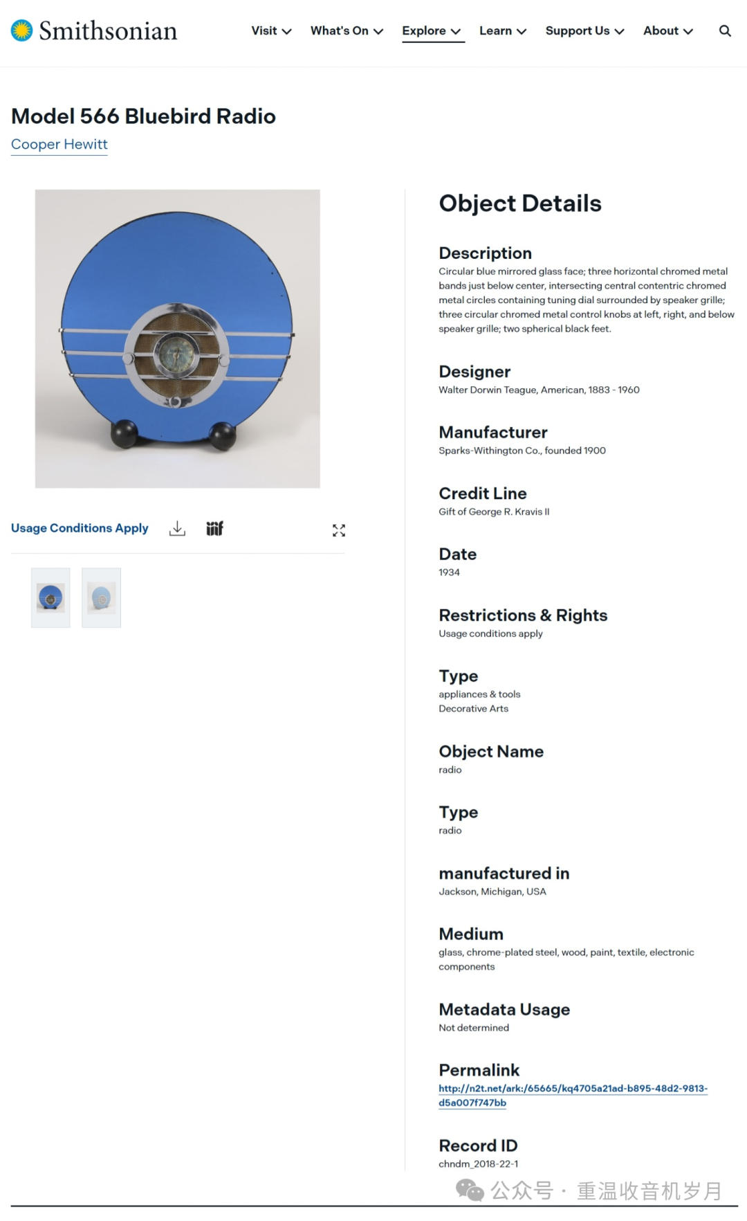 库珀·休伊特史密森尼设计博物馆收藏的Bluebird。