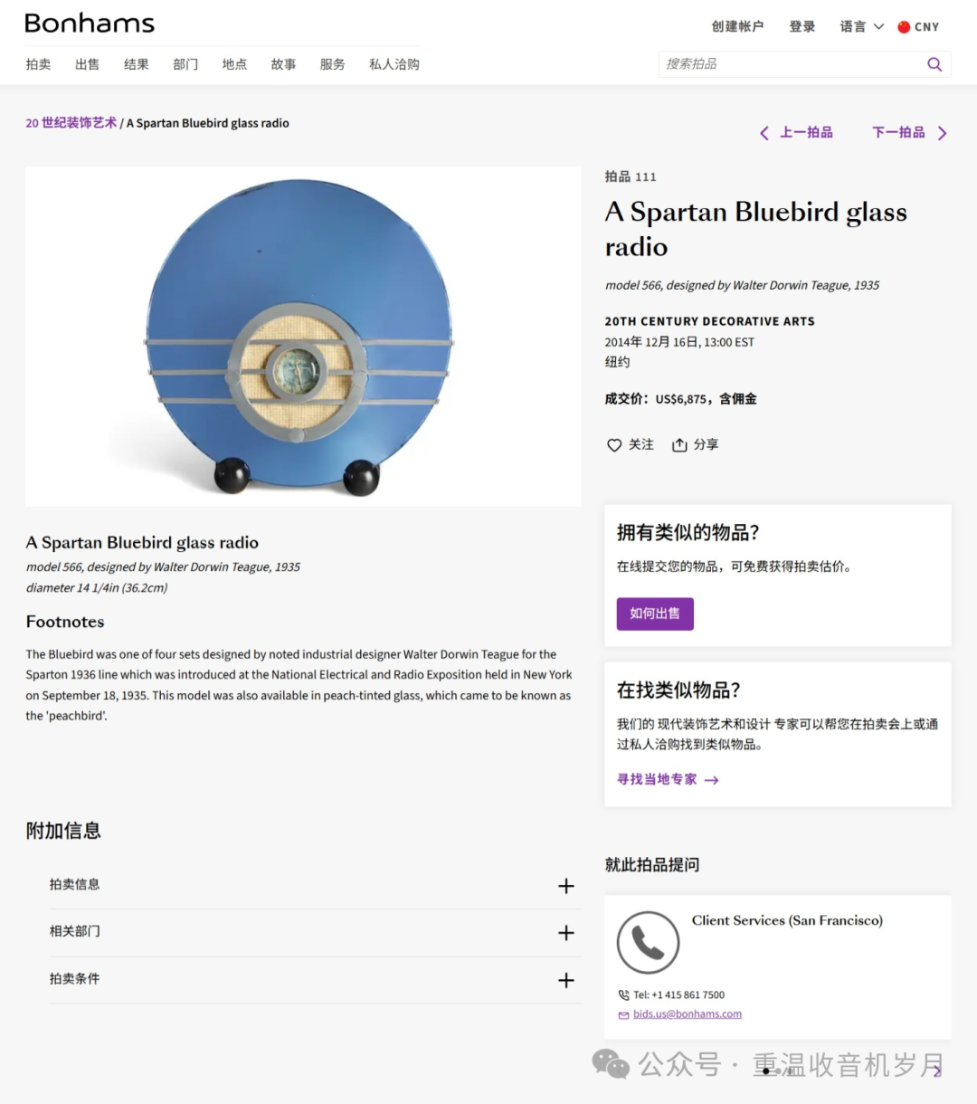 2014年12月16日,Bonhams拍卖的Bluebird以6875美元成交。