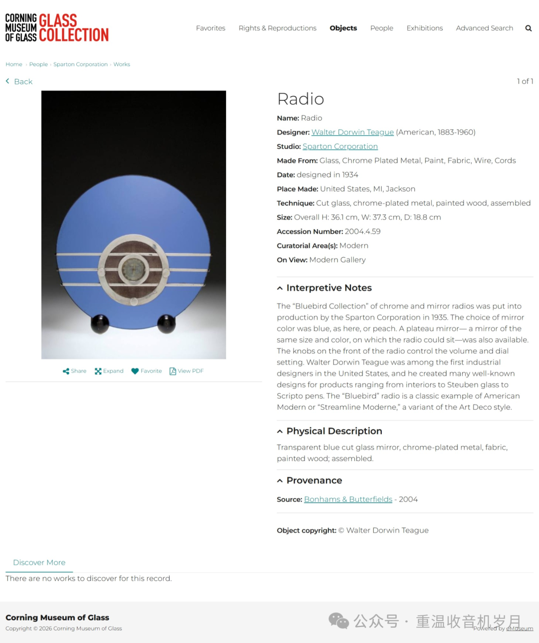康宁玻璃博物馆收藏的Bluebird。