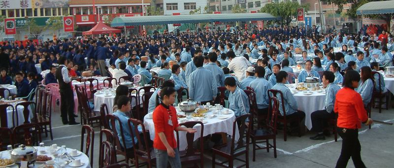 东莞市德生通用电器制造有限公司的股东、全国各地总代理、全体干部员工,东莞市一德电感器件制造有限公司全体干部员工、东莞市大德精密模具制造有限公司、东莞市嘉德电声器材公司的全体干部员工1400多人齐齐聚集在景泰广场,庆祝德生收音机上市十周年。