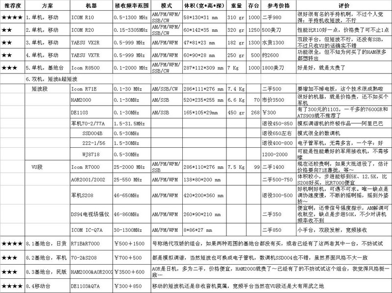 论接收,可以分为听广播、听电台、听信号,象我这种好奇心强的人,喜欢听信号,反映到机器上,就是频率、功能一定要全,什么都能听(广播、火腿通联、出租车调度、民航联络、JC对讲,甚至宾馆退房、二奶台、信标台,统统不放过,一个都不能少!)