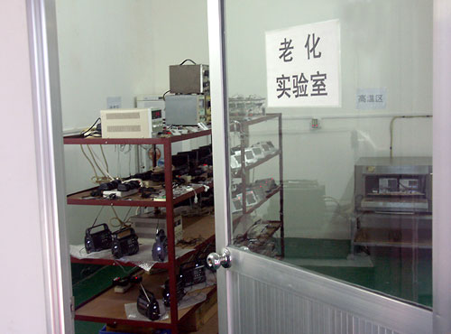 现在进行的是老化测试。这个过程是考验机器的稳定性,质量不稳定的将会在老化过程中被淘汰,这也保证了德劲市场方面较低的返修率。在同一房间里,产品还要经过低温和高温测试。