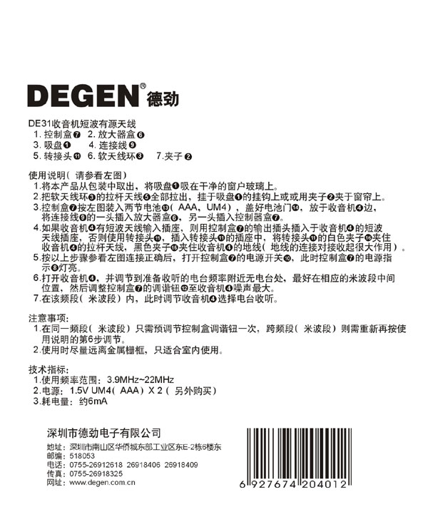 德劲牌DE31短波有源接收天线是一种环形谐振放大型天线,因此具有高抗干扰和高灵敏度、高选择性以及小巧便携易用的特点。