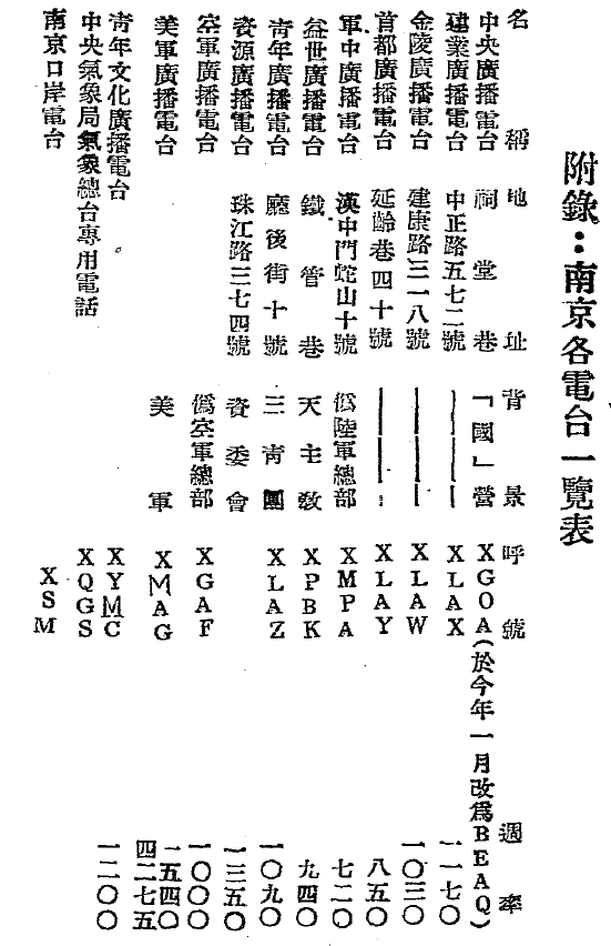(南京地下党编辑的“南京调查资料”中的电台信息)
