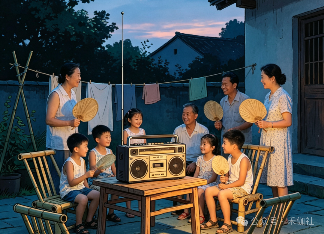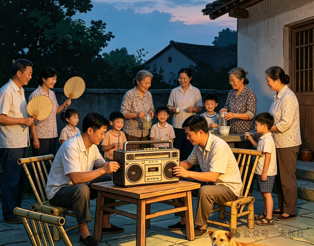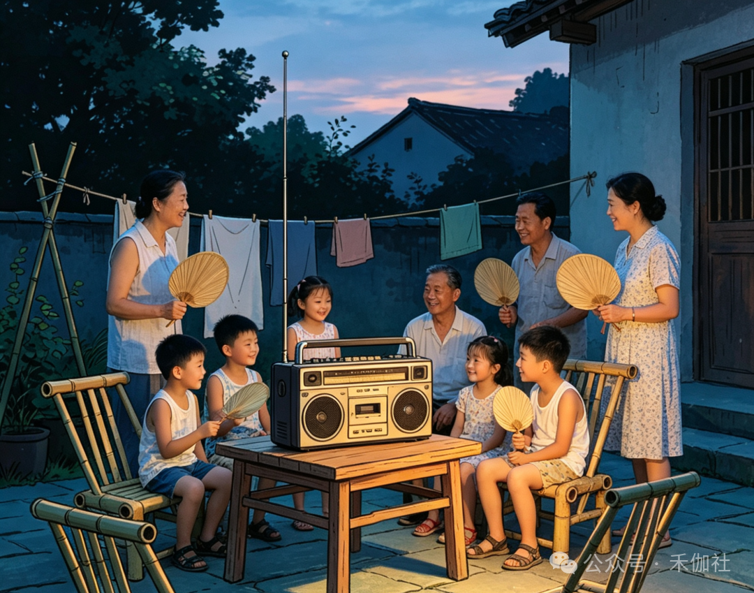 乡亲们搬来自家的小板凳,摇着蒲扇,三三两两围坐在一起,就等着舅舅拧开收音机。评书里的侠义故事扣人心弦,戏曲唱段婉转悠扬,时事新闻新鲜有趣,声音从小小的喇叭里传出,传遍整个村落。
