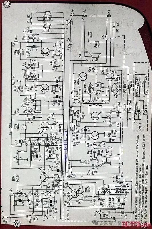 电路:9锗管,带调谐高放、双联变频、双调谐中放
