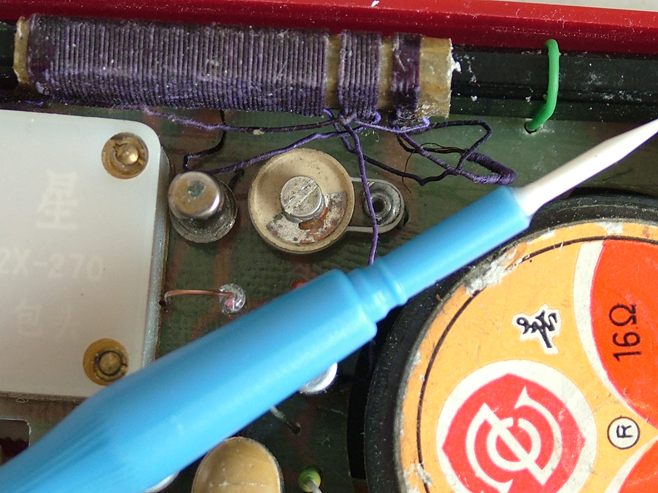 用纱包线绕制天线线圈,找不到牛皮纸线圈骨架是用一次性水杯作的.