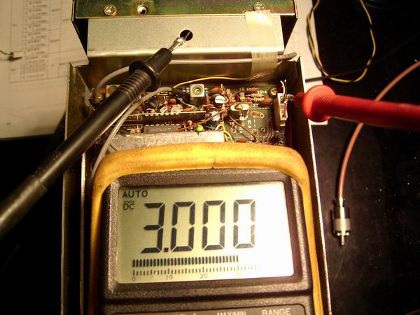 直流电压表接到【锁相环板】的R46,得到读数,调整【锁相环板】的C88,使读数为6.5V