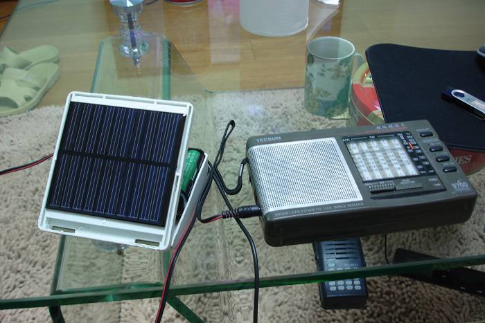 电路及维修 太阳能充电式收音机供电盒 广播发烧网 2008-05-05 00:00 · 2068 0 用装修剩下的插座防水盒,做了个太阳能充电式收音机供电盒:角度可调,以便更好的吸收太阳能构造决定了其性能特点:有太阳时充电,无太阳时电池供电,充电电流令人满意,属于涓流中,中等电流充电。保守估计:听收音机,放在透明的窗台上,家里至少2年不用和中国电力公司打交道了,所有便携式6V以下收音机通用。而且增加了USB充电线,还可以给手机小灵通充电、打电话。 点赞 0 文章目录 × 推荐阅读AM/FM收音机的安装与调试德生PL757、R-9701、R-818、R-202T系列收音机原理、维修与实测数据浅析德生BCL3000的电路德生PL-380小打磨熊猫802-1收音机电路分析与维修收音机工作原理矿石收音机制作教程(一)新人试做TEF6686 DSP 收音机德生R-9701收音机电路原理解析给PL380无损加装外接中波天线功能 上一篇 2008年5月份中国地区短波最佳传播频率区域时刻表(频率单位为MHz) 下一篇 窗框中波天线的试验