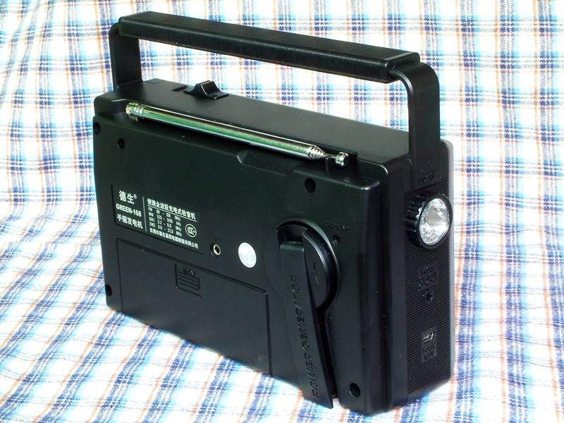 GR-168体积中等,外观漂亮,比较讨人喜欢的。其最大的卖点在于能在紧急、无电源的情况下使用,且价格便宜。即使没有任何电池,手摇着发电也能收听。