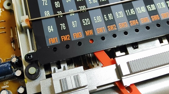 不过刻度盘有些偏厚了,波段位置指示块又和刻度盘有些间隙,看不很清楚。