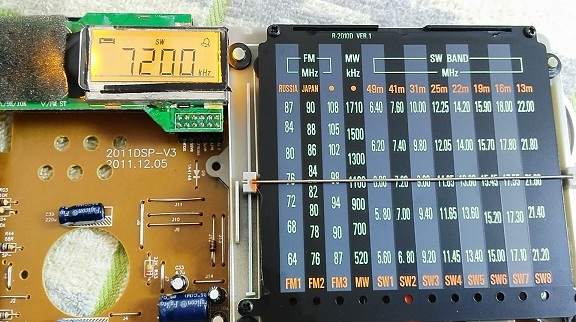 看上面第一张图可以发现,刻度盘和数显不是很一致,指针偏上了一些。不过各个波段都是一样偏上的,这就好办了。移动指针是一个办法,但是检查指针上下行程基本是合适的,于是在调谐电位器处加了一个电阻解决。