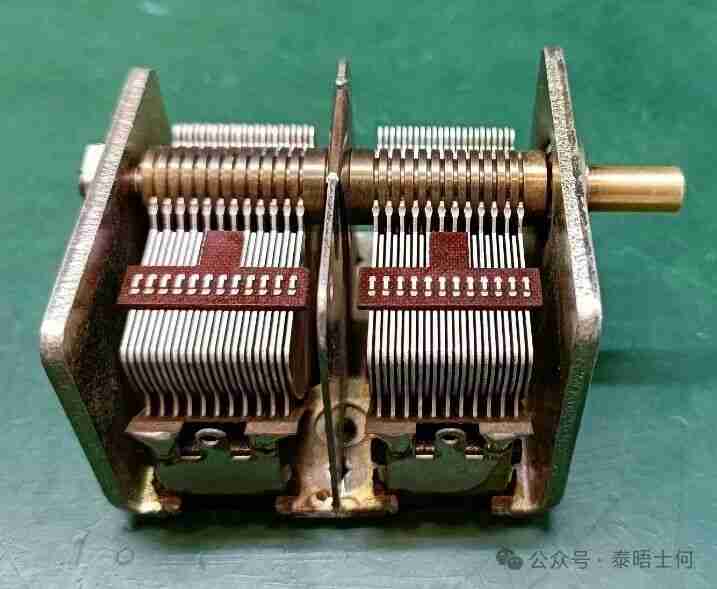 1. 空气双联可变电容(调台核心):双连/单连空气介质,铝片动定片,用于调谐与本振回路;优点是高频Q值高、稳定;缺点是体积大、怕灰尘。