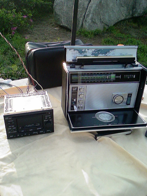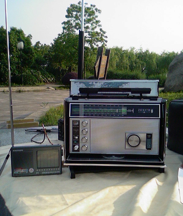 下午雨过天晴。闲着无事,约上本村的小陈 一起去湖边做DX ,手头没有什么机器,带了数字机1103 和晶体管ZENITH 7000 小陈带了NISSAN 短波车机。
