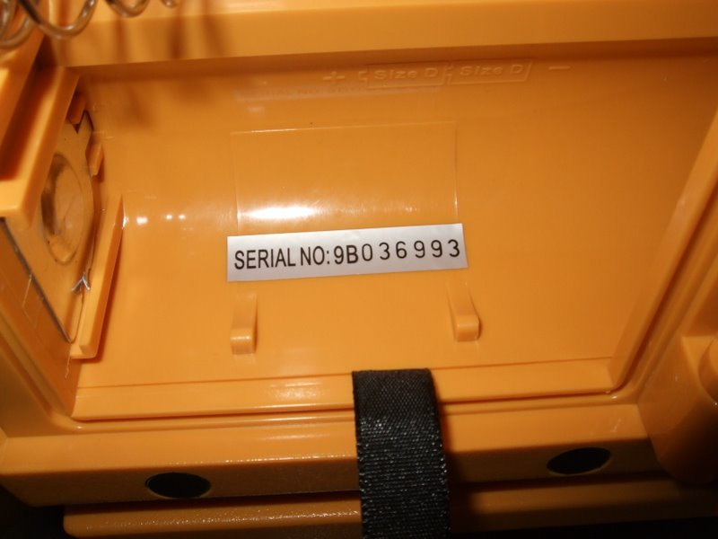 (机子前面有一个三粒二极管构成的照明光源,开关设置在左侧;轻按是短发光,用力按下后,是常亮。这个机子用六个一号电池供电,估计这个小照明灯能坚持相当长的时间!)