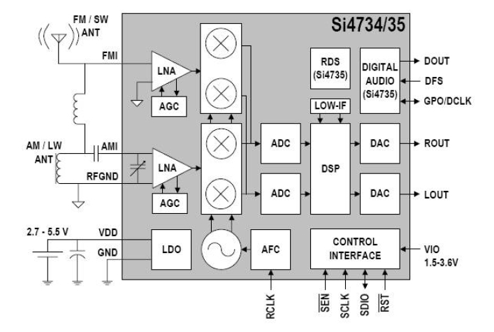 尽管目前索尼(Sony)生产的便携式收音机,比如SRF-59等还是采用CXA1129N芯片作为其收音机的主部件,但SILABS家族的DSP芯片在性价比上已经有了真正的突破。