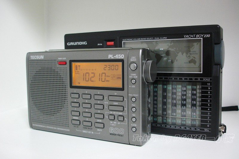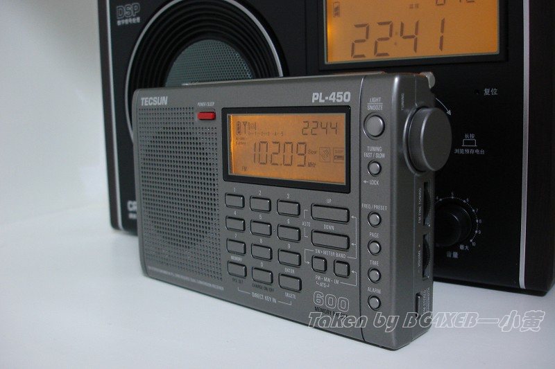TECSUN PL-450型收音机是今年德生电器推出的一款真正意义上集接收民用LW、MW、SW、FM信号于一体的全波段数字调谐便携式收音机,该机为德生PL-350收音机的改进机型,机壳模具与PL-350相同。