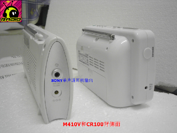 钟控功能,CR100有二个开机,一个贪睡功能,一个液晶背景亮度光,睡眠关机功能。而M410V只能设一组自动开机时间,睡眠关机也只能4档可调。最差劲的是M410V的液晶没有背景光显示!!!如果不开灯,夜晚操作起来很麻烦。其实不是增加这个东西有难度,也许是SONY想让自己生产的钟控收音机来完成这项工作。CR100的耳机输出是立体声的,M410V是单声道的。