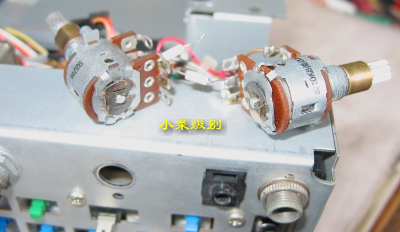 这是71E的音频增益和前置增益组合旋钮,第三张表现的是完好的音频增益和前置增益组合旋钮(左)与音频增益失灵的组合钮(右)。R71E由于在原单位用得很“狠”,甚至也可以说是小日本的不老实,它们的旋钮有些会失灵,一些是使用者的粗暴使用所致,而有些则是出厂的时候就这样,去年有台全新原包的R71E就是音频增益钮失灵可以360度旋转。当时由于胆子不够大学技不好,不敢开机检查,所以就原样转让了,现在想找原包的也没这个店了,这是典型的菜鸟行为啊,其实恢复起来很简单的。