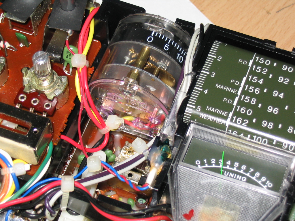 听了一段时间以后,发现FM波段刻度盘指示不稳定,例如,收听我本地100.3MHz电台,有时候刻度指示在100处,而有时候却跑到100到102之间去了!