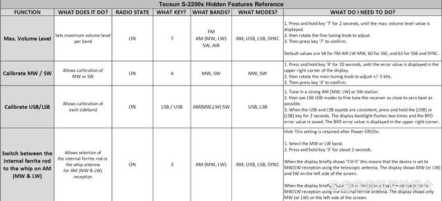 在户外使用拉杆天线接收中波和长波信号,灵敏度惊人。在S-2200X以及其他最新的德生收音机、科多笙DX-286上,你长按数字按键几秒钟,就能开启“使用拉杆天线接收中波和长波信号”功能。在家中使用该功能几乎不可能,因为射频干扰会让接收完全哑火,取而代之的是噪音。但是,如果你在低噪音环境中,例如户外,中波接收会非常灵敏。那些使用内置磁棒天线接收时极其微弱并且伴有噪音的信号在此时背景噪音中的嘶嘶声就变低了,甚至消失了……你必须亲身体验才能相信。把收音机拿到院子里或公园里试一试……你一定会印象深刻。在这种情况下,S-2200X 的中波灵敏度评分从3颗星能提升到5颗星。