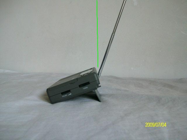 3、支撑板打开,将机子放置在桌面上,天线无法处于垂直状态。