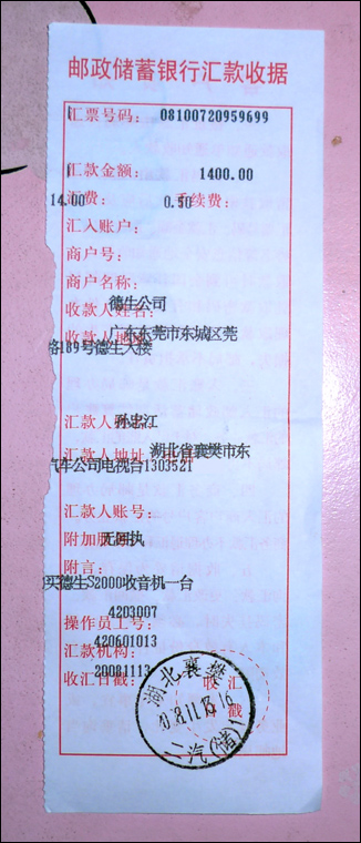 我的机器是11月13日汇的款,这是回执单。