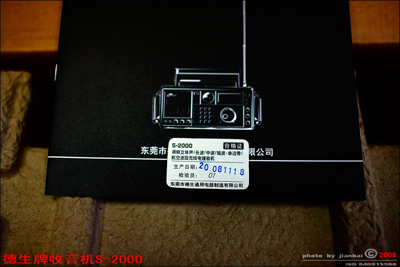 终于收到德生公司发来的S-2000,这台机器是我所有机器中最高级,最好的一台,首先上标准照。。