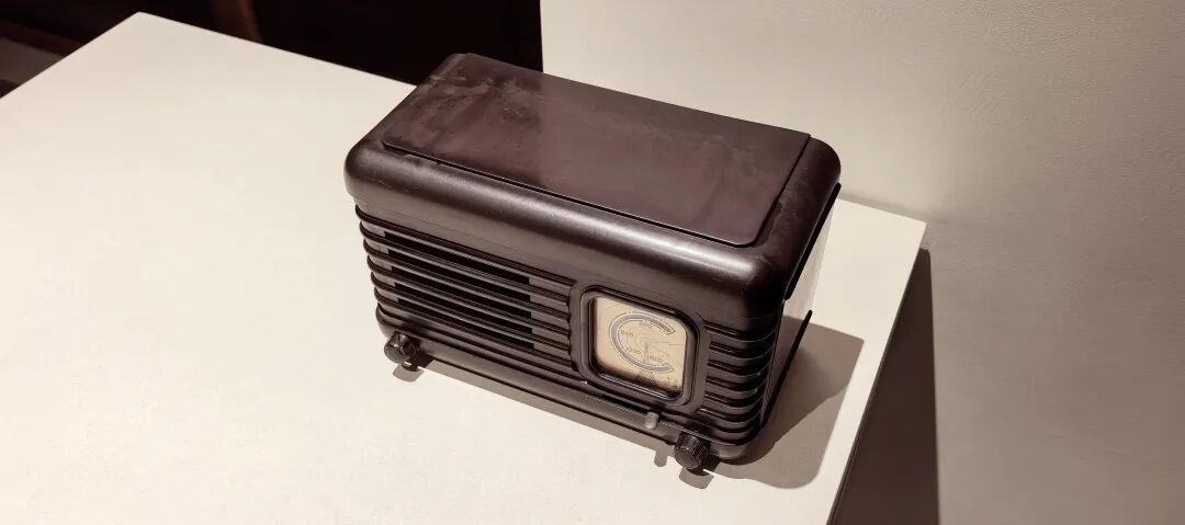 “小北京”标志性的C形刻度盘与铁塔图案,辨识度极高。机壳侧面的竖条格栅既是装饰,也是扬声器出声口。底部铭牌清晰标注“国营无线电厂出品北京牌收音机”。继“小北京”之后,该厂又推出了北京牌210型、217型等衍生机型,并衍生出带电唱功能的“和平牌”。随后不久,随着电子管向晶体管时代的过渡。八十年代,由于电视机的逐渐兴起,这款经典的胶木收音机逐渐淡出主流市场,成为了如今极具收藏价值的工业文物。