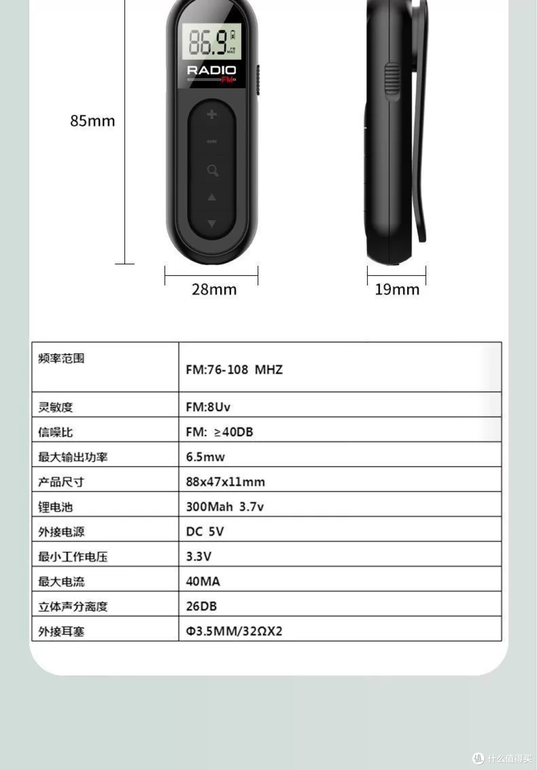 最后给大家分享一张它的详细参数规格图,就是这么一款巴掌大的小收音机,没啥花里胡哨的,20来块钱的价位,感兴趣的宝子可以瞅瞅~
