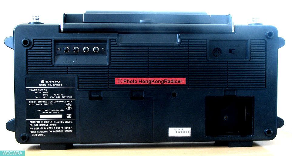 我这台三洋RP-8880接收机,除了高频增益电位器在旋至将近最大时有一卡嚓声外,其它各音量、高低音电位器及开关在使用时都不会发生杂音,各波段均能正常收音,据悉这是现存的RP-8880机子中什为少见的,若不是背板电源接线盒缺了一盖子,这机的收藏价值应可评为5星级别。