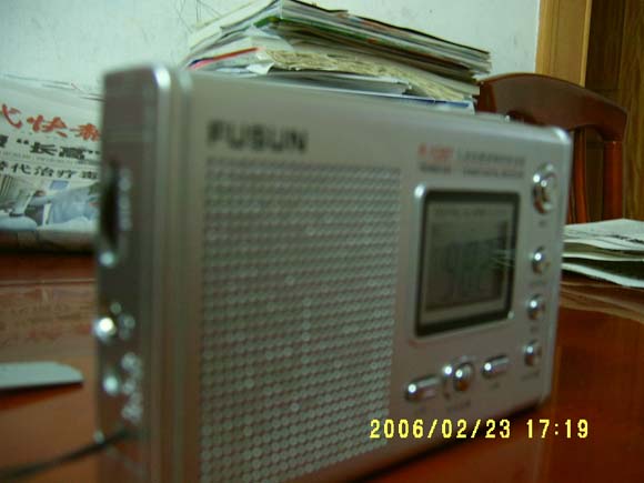 福生F-1257,25元很便宜 广播发烧网 发布于 2006-2-25 00:00 收音机 因办公室没有时钟,我又怕带手表,又想听中国之声MW756的早8点晚16:30的体育直播间,又怕好的东西被盗,昨天从菜市场买了一台福生F-1257,25元还送2节电池.1、包装盒,很有味道 2、正面。心急,照的不好凑乎看看吧3、各侧面 4、与德生R-90125、看看这个3C号码与安键一样就知道他们是一家6、看看背面很象 文章目录 × 推荐阅读50~70年代国产收音机的几款经典机型中国收音机百年史SONY 最后一台高端全波段收音机的前世今生浅谈收音机的百年发展历史固件版本为078版本的山进909X2收音机的整体表现不错国产古董级晶体管收音机——东湖牌收音机新机亮相--德劲DE1108小米LED灯下的德生PL-230德生PL-330拆机高清大图从上海滩起家的中国收音机100年史,背后是集成电路的发展史 上一篇 3月1日下午一小时的桂江下游收听手记(图片说话) 下一篇 凯隆KK-9906S校园广播FM立体声十波段收音机分解