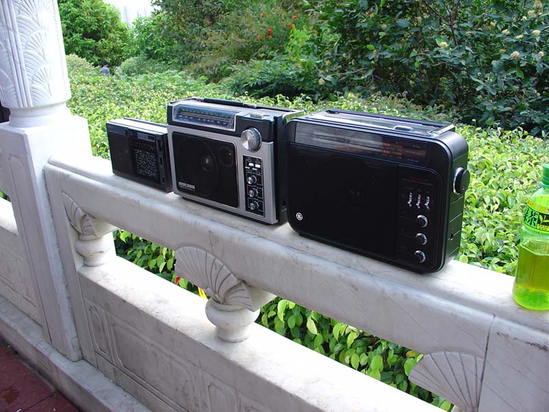 17. 在深圳莲花山一次测试框形天线的活动中,我把这台GE SR2 型及另一台 SR3型收音机都带到山上收听,结果在测试框形天线的同时,发现有一信号微弱的电台,其它的机子离开了框形天线都不能收得这弱台,只有这两台美国中波机王 GE SR2 和 SR3 及另一台由ARVIN网友带来的日本中波机王SONY EX-5,能够不利用框形天线, 只用机内的磁棒天线就能够清楚地接收这弱台了,所以当时大家都称这三台机是名符其实的中波机王;