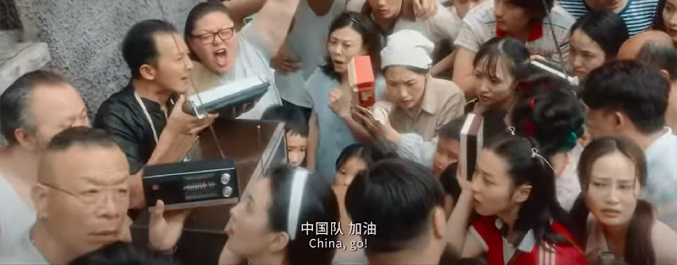 图注:《我和我的祖国》里上海弄堂老百姓用半导体收音机听女排夺冠