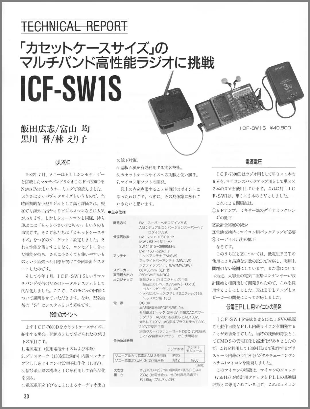 为了实现多波段收音机的小型化,专门开发了可在 3V 下工作的 IC,这点要向设计人员致敬。