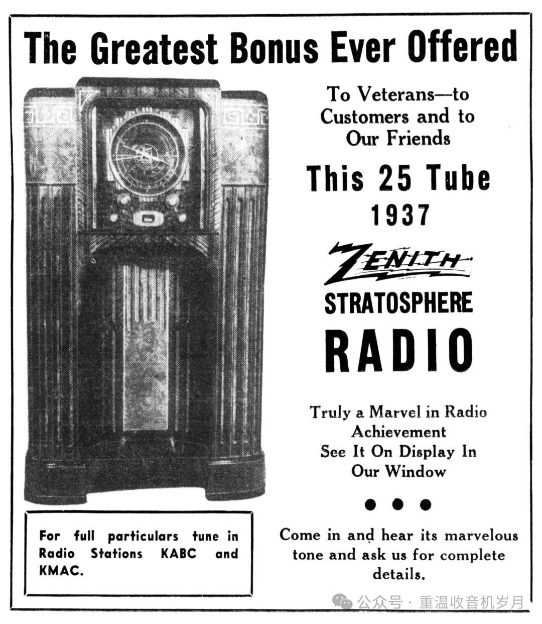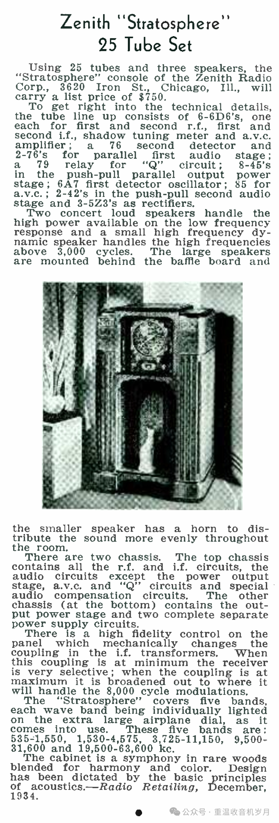 25管Zenith Stratosphere介绍,来自1937年Zenith高级收音机样本。文字翻译: