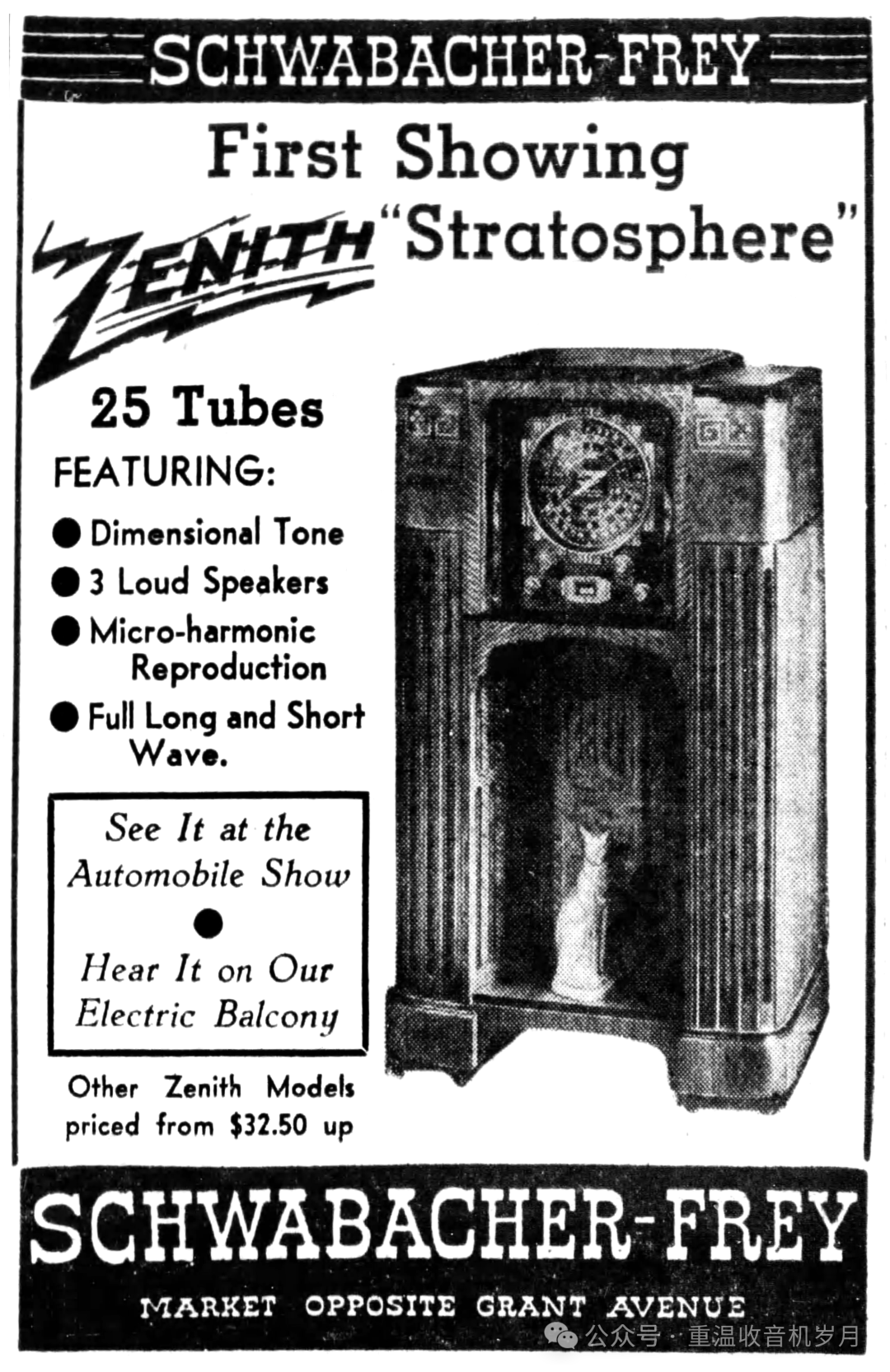 25管Zenith Stratosphere广告,来自《The San Francisco Examiner》1935年1月22日第18版。