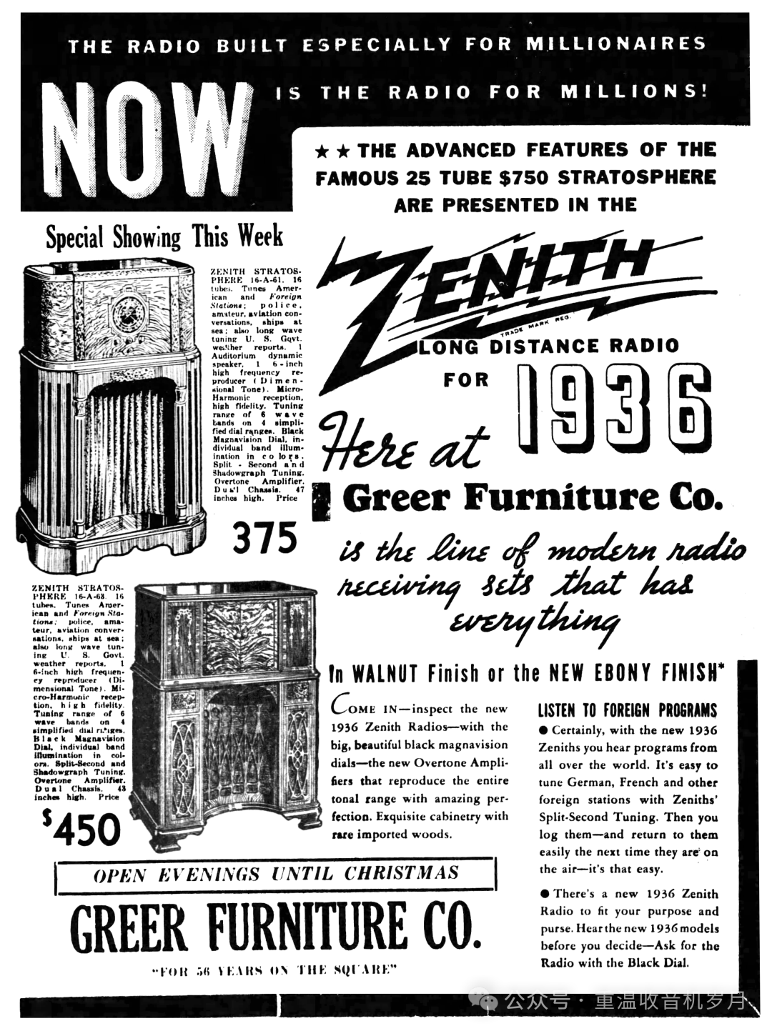 Zenith 16-A-63广告,来自《Honolulu Star Advertiser》1936年9月27日第36版。