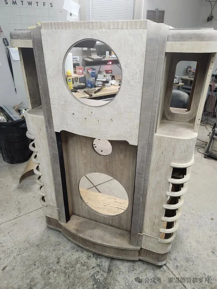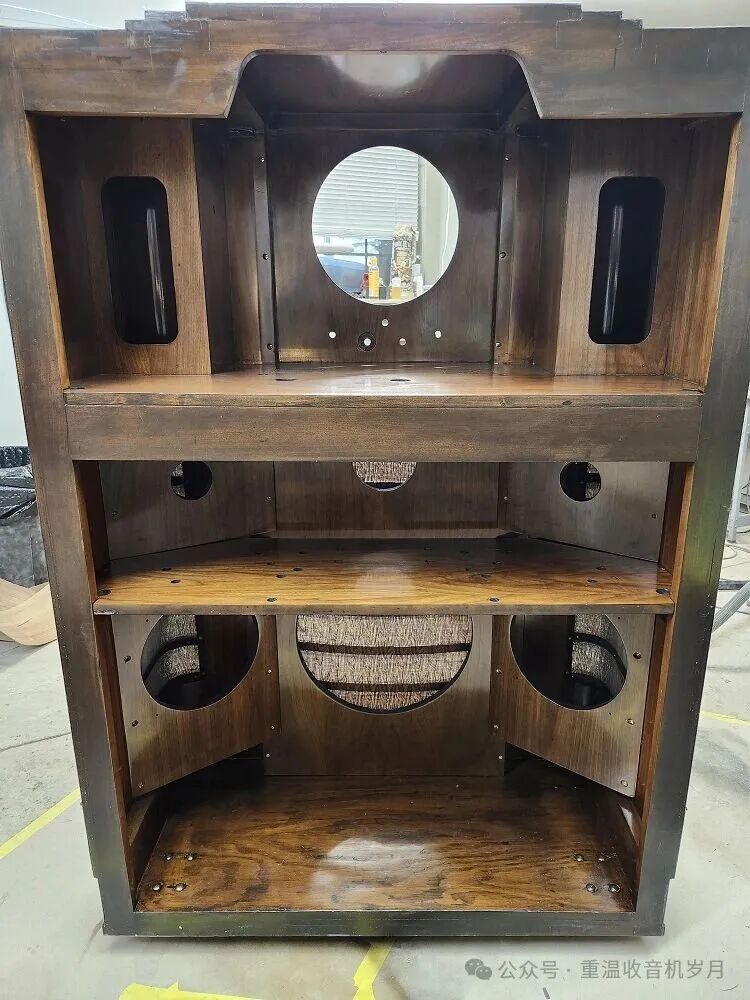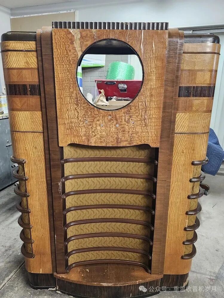 这台Crosley WLW机箱修复前后的照片。详细修复过程: